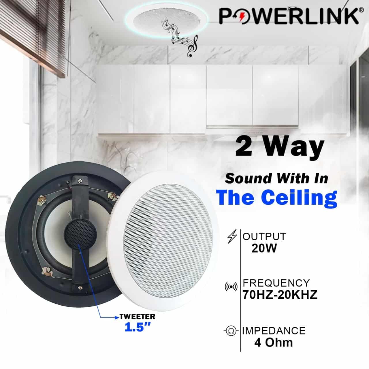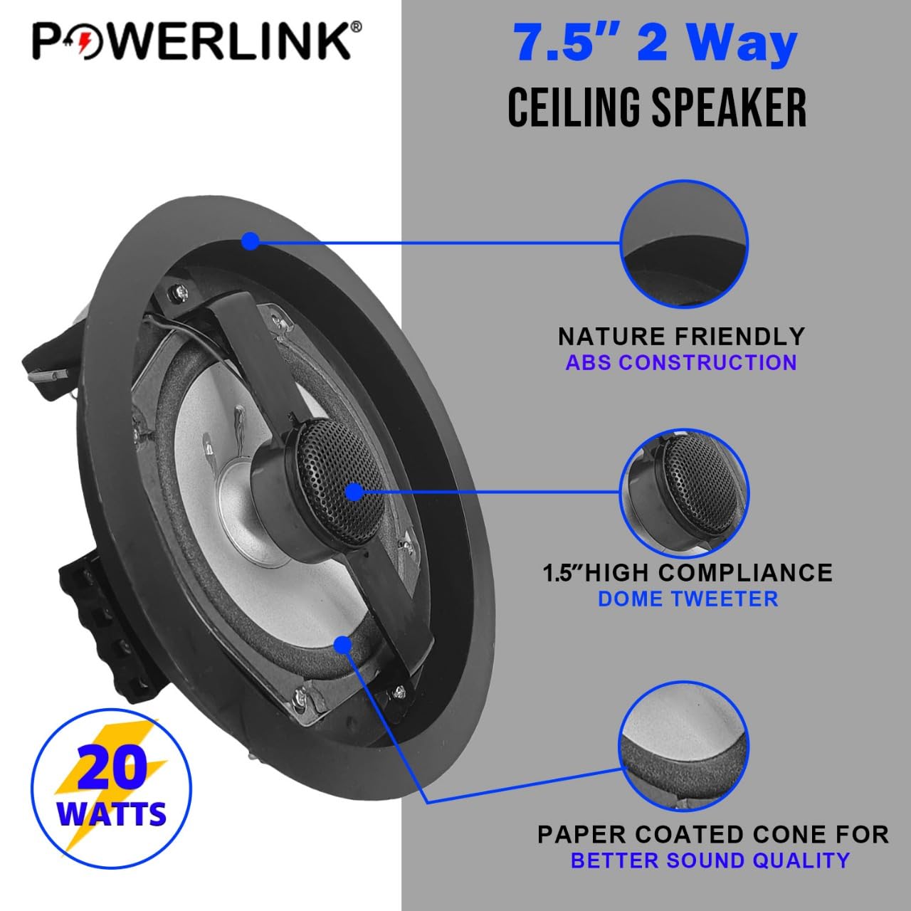 POWERLINK 7.5 Inch Ceiling Wall Mount 2-Way Mid Bass Woofer Speakers Pair 1'' Polymer Dome Tweeter