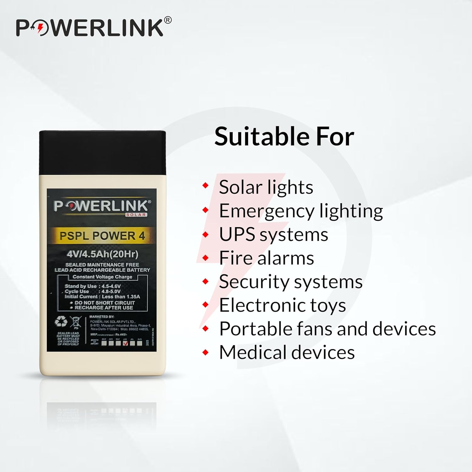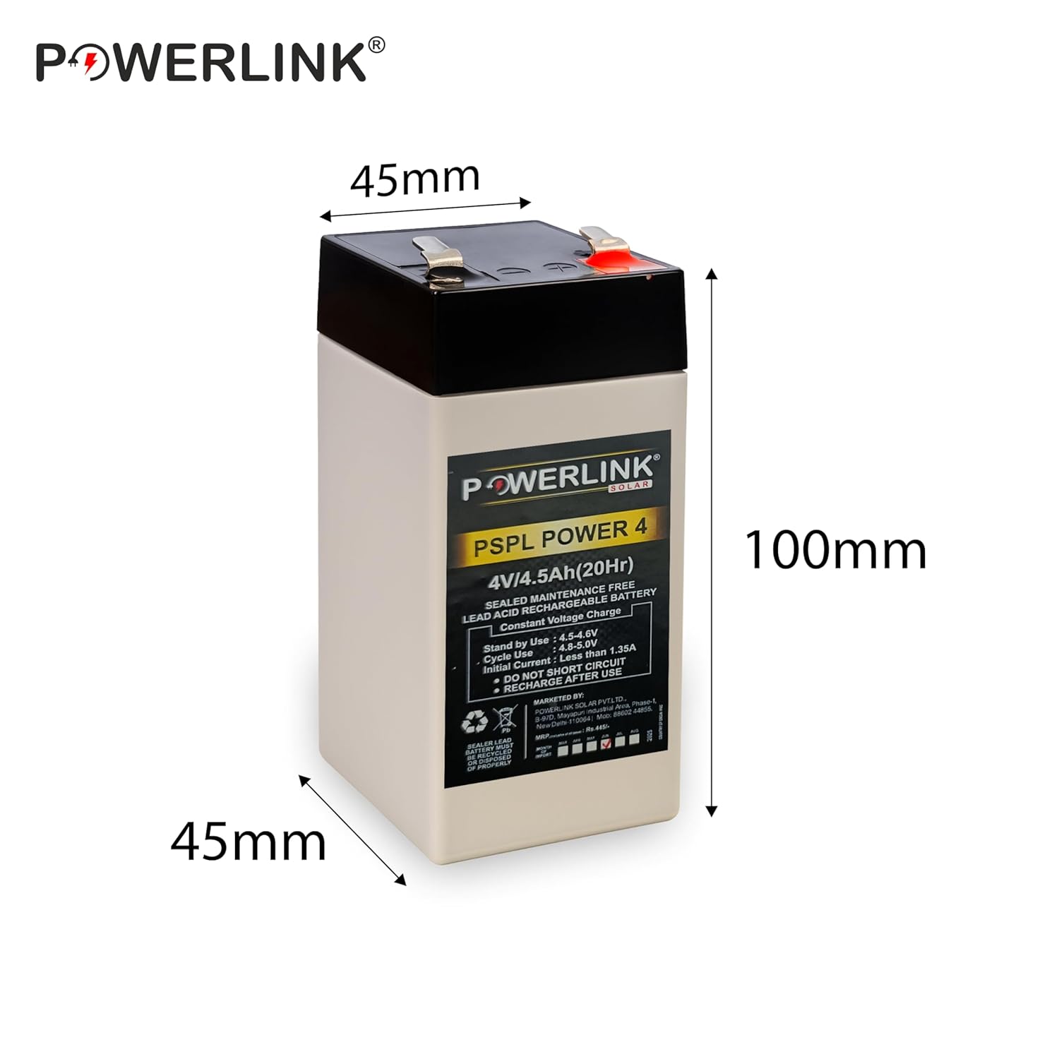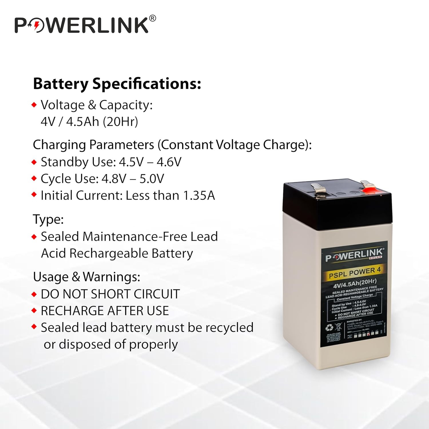 POWERLINK 4V 4.5AH SMF/VRLA Battery | Sealed Lead Acid Battery